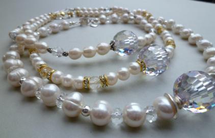 3 kurze Perlenketten mit der Diamant-Sonne und Bergkristall